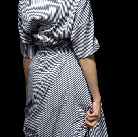 La mia ricerca ora verte sulla semplificazione e sull'immediatezza. In realtà i miei lavori sono complicati nella realizzazione sartoriale ma facilmente comprensibili. Una mia gonna è facilmente riconoscibile come tale, anche se in realtà è una striscia di tessuto alta 3 centimetri e lunga 40 metri che, con una unica cucitura a spirale e con una differente tensione durante l'assemblaggio, viene plasmata in forma tridimensionale. Il risultato finale si presenta come gonna ad anfora. Anche in questo caso c'è un ”prima” che in un cartamodello classico verrebbe rappresentato graficamente con una forma piana di un davanti ed un dietro, cuciture laterali, un bordo in vita ad una apertura con cerniera, poi c'è un “dopo” che avviene attraverso una decostruzione virtuale e una ricostruzione anche essa virtuale e visionaria. La mia opinione è che solo tramite una decostruzione della gonna convenzionale possiamo rispondere alle esigenze di vestibilità e di rappresentazione contemporanea, inoltre la nuova costruzione offre opportunità di sperimentazione che non sarebbero fattibili in modo più tradizionale. Non necessariamente un'operazione di decostruzione deve presentare una sottrazione. Ne esistono diversi esempi, che considero tali: le cuciture disallineate di Hussein Chalayan che diventano cicatrici con Carol Christian Poell, oppure le giacche scomposte e ricomposte di Craig Green o le sovrapposizioni di Junya Watanabe.