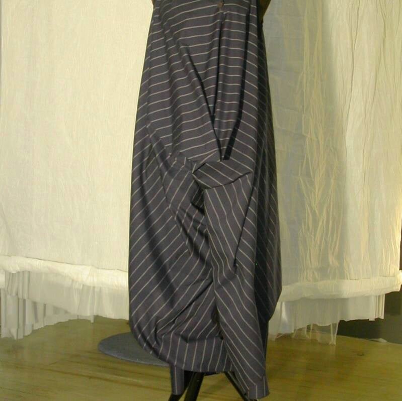 La mia ricerca ora verte sulla semplificazione e sull'immediatezza. In realtà i miei lavori sono complicati nella realizzazione sartoriale ma facilmente comprensibili. Una mia gonna è facilmente riconoscibile come tale, anche se in realtà è una striscia di tessuto alta 3 centimetri e lunga 40 metri che, con una unica cucitura a spirale e con una differente tensione durante l'assemblaggio, viene plasmata in forma tridimensionale. Il risultato finale si presenta come gonna ad anfora. Anche in questo caso c'è un ”prima” che in un cartamodello classico verrebbe rappresentato graficamente con una forma piana di un davanti ed un dietro, cuciture laterali, un bordo in vita ad una apertura con cerniera, poi c'è un “dopo” che avviene attraverso una decostruzione virtuale e una ricostruzione anche essa virtuale e visionaria. La mia opinione è che solo tramite una decostruzione della gonna convenzionale possiamo rispondere alle esigenze di vestibilità e di rappresentazione contemporanea, inoltre la nuova costruzione offre opportunità di sperimentazione che non sarebbero fattibili in modo più tradizionale. Non necessariamente un'operazione di decostruzione deve presentare una sottrazione. Ne esistono diversi esempi, che considero tali: le cuciture disallineate di Hussein Chalayan che diventano cicatrici con Carol Christian Poell, oppure le giacche scomposte e ricomposte di Craig Green o le sovrapposizioni di Junya Watanabe.